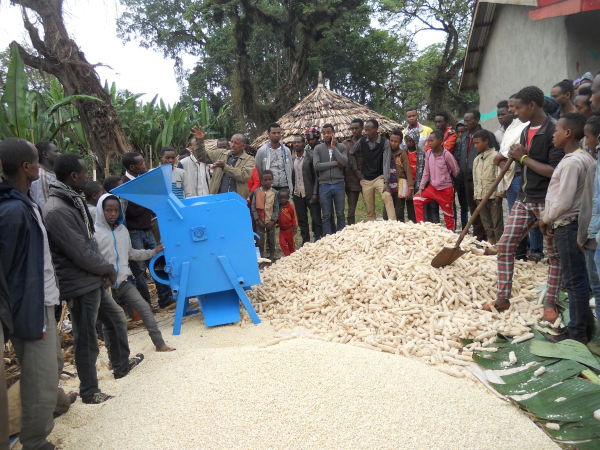 Explaining the importance of Maize sheller to farming communities -Anna Sorra woreda
