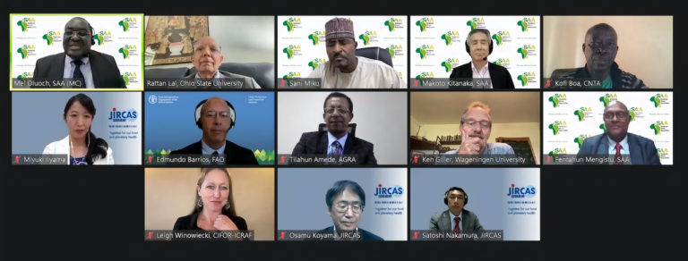 On 5 August, SAA successfully organized an official online Side Event for Tokyo International Conference on African Development VIII (TICAD8) in collaboration with the Japan International Research Center for Agricultural Sciences (JIRCAS) under the theme: ‘Healthy Soils for Food Security in Africa – Potential of Regenerative Agriculture’. For the keynote address, distinguished Prof. Rattan Lal of the Ohio State University noted that: “We must support pro-nature, pro-farmer and evidence-based policies, and increase financial investments into improvements of healthy soil in Africa” The full recording of the session can be found here.