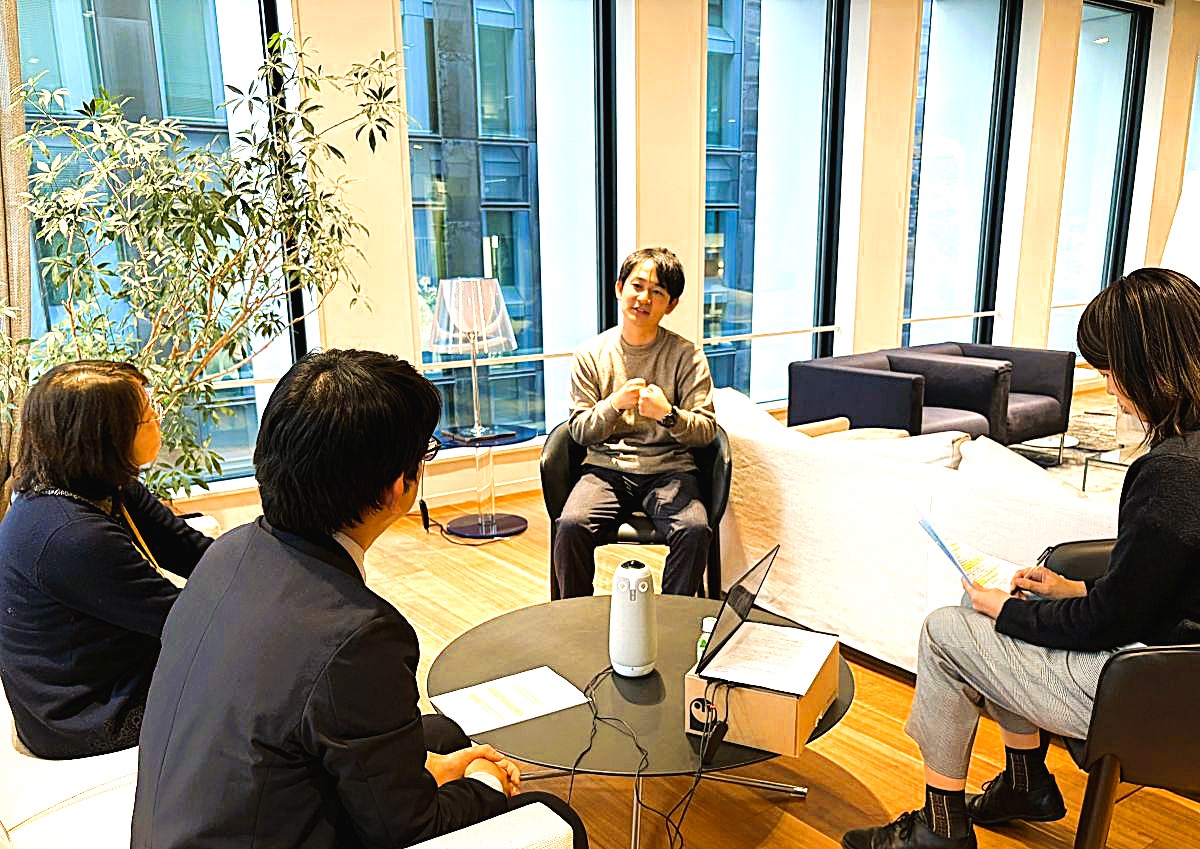 田才諒哉さん インタビューの様子(ササカワ・アフリカ財団 東京本部)SAA: 企業とNGOの中間のような立ち位置にも感じます。