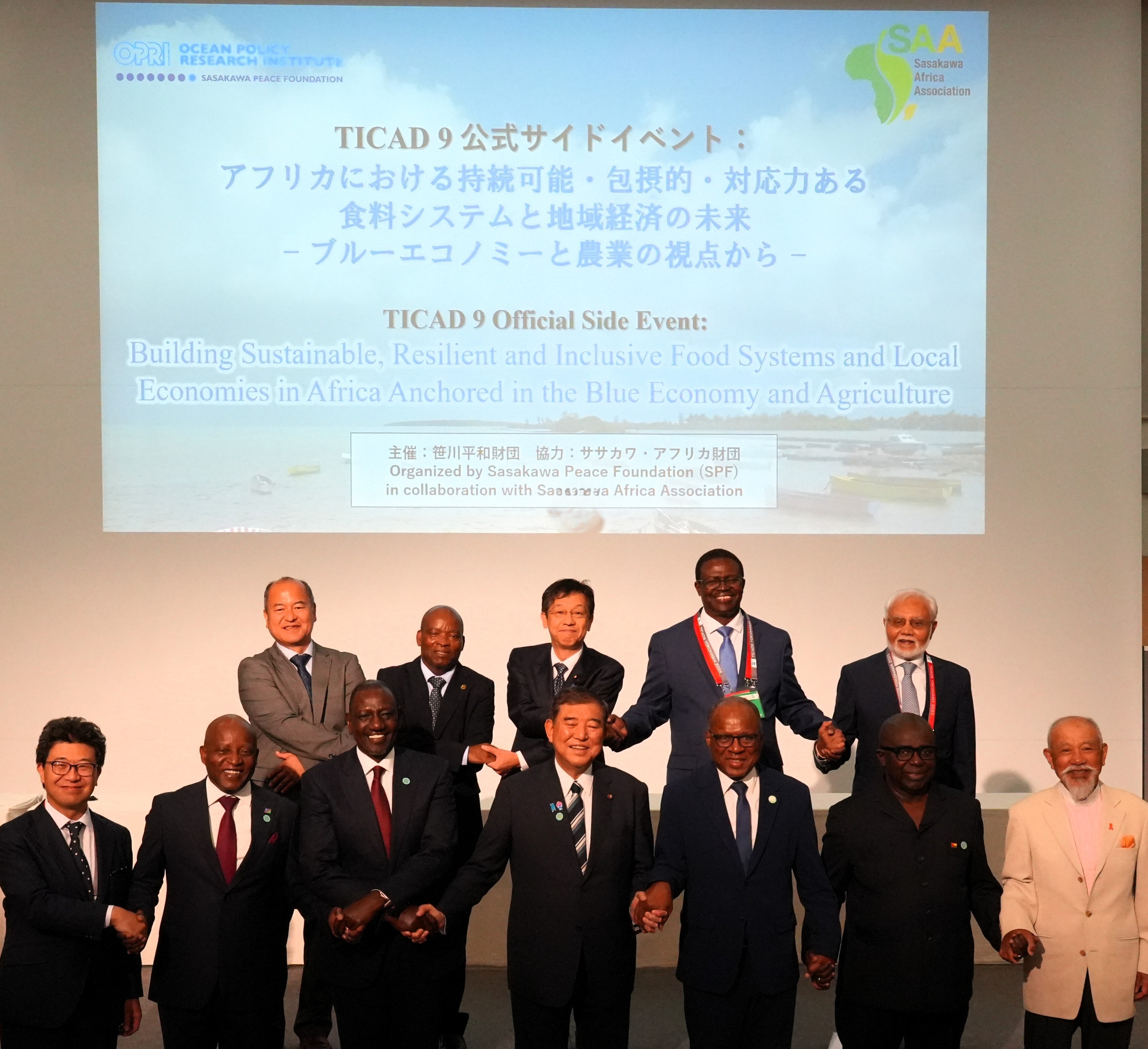 The event began with opening remarks from Dr. Atsushi Sunami, President of the Sasakawa Peace Foundation, followed by a guest address from Yohei Sasakawa, Honorary Chairman of The Nippon Foundation and SAA. Prime Minister Shigeru Ishiba then gave a special address, emphasizing the importance of the partnership between Japan and Africa. A high-level discussion followed on the theme, "Promoting a Sustainable Blue Economy and Agriculture in Africa: Strengthening Capacities and International Collaboration." Panelists for this discussion included H.E. William Ruto, President of the Republic of Kenya; H.E. Mr. José Ulisses Correia e Silva, Prime Minister of the Republic of Cabo Verde; H.E. Tjitunga Elijah Ngurare, Prime Minister of the Republic of Namibia; H.E. Soares Sambú, Minister of Economy, Planning, and Regional Integration of the Republic of Guinea-Bissau; and Mr. Hisashi Matsumoto, Parliamentary Vice-Minister for Foreign Affairs of Japan.